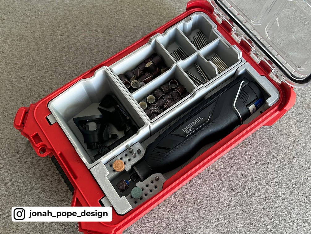 - No Loose Dremel Bits - I designed my inserts to follow the contours of the Packout lid when closed. You can rest assured you won't have your Dremel bits jumping over dividers whilst in transport or carrying your Packout.