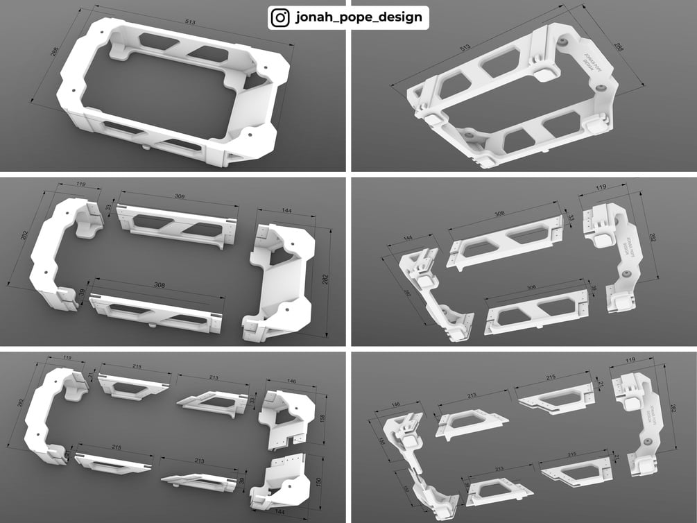 Pre Split Files and Hardware - A huge variety of files are included for you to print your adaptor. You can print in a single piece if you have a larger enough printer, or print it in pre split parts like I have done and then bolt them together. I printed all of mine on my Bambu X1C with its 256x256mm bed. The pre split parts have 4mm holes provided for M4 bolts.