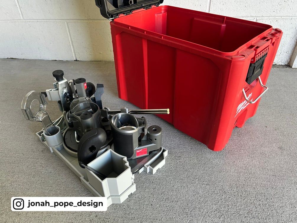 This is a custom insert that I have designed to fit your Milwaukee Packout Compact Tool Box to store your M18 Router Bases and accompanying accessories. It specifically fits the Milwaukee 48228422 PACKOUT Compact Tool Box: https://www.milwaukeetool.com.au/storage/packout/tool-boxes/48228422.html