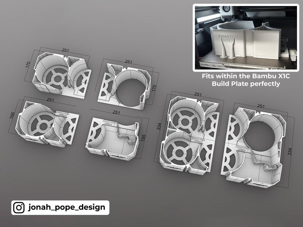 These are large parts. Files are provided for both single part prints or printing in halves with my pre-split files. My pre-split files have sections included that allow the two halves interlock and allow for easy application of super glue.